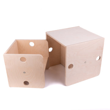 De ado kubus stoel en kubus tafel zijn ontworpen met een slim en flexibel design. Dankzij de omkeerbare constructie kunnen kinderen zelf bepalen welke hoogte voor hen het beste werkt. Dit maakt de meubels perfect voor meegroeien met kinderen en ideaal voor verschillende leeftijden.