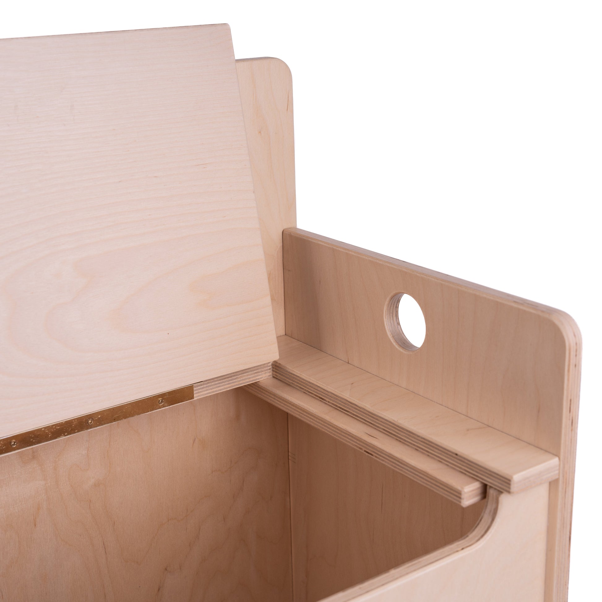 De ado speelgoed kubus opbergbank heeft een stijlvol, origineel eigen ontwerp en past perfect in de kinderkamer of speelkamer, maar kan ook een mooie aanvulling zijn in elke woonkamer. Het biedt niet alleen opbergruimte voor speelgoed, maar is uiteraard ideaal als eigen zitplek. De opbergruimte is gemakkelijk toegankelijk voor kinderen door de handige scharnierklep, zodat ze zelf hun speelgoed kunnen opruimen. De houten kubusbank is voorzien van een hoge rug en armleuningen met de bekende ronde ado uitsparingen. Het FSC-hout en de Nederlandse productie garanderen een hoge kwaliteit en duurzaamheid. Kortom, deze houten ado kubus opbergbank is een praktische en stijlvolle oplossing voor het opruimen van speelgoed en creëert meer ruimte en rust in de kinderkamer of woonkamer.